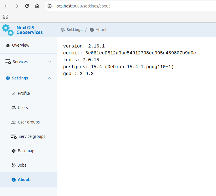 In a Web browser open the Web interface of NextGIS GeoServices using the URL you’ve chosen.