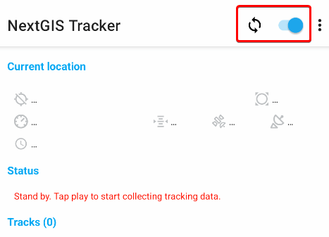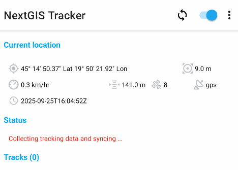 Active synchronization is indicated by the blue color of the switch as well as the symbol next to it. Now the App sends all collected GPS tracks to the Web GIS.