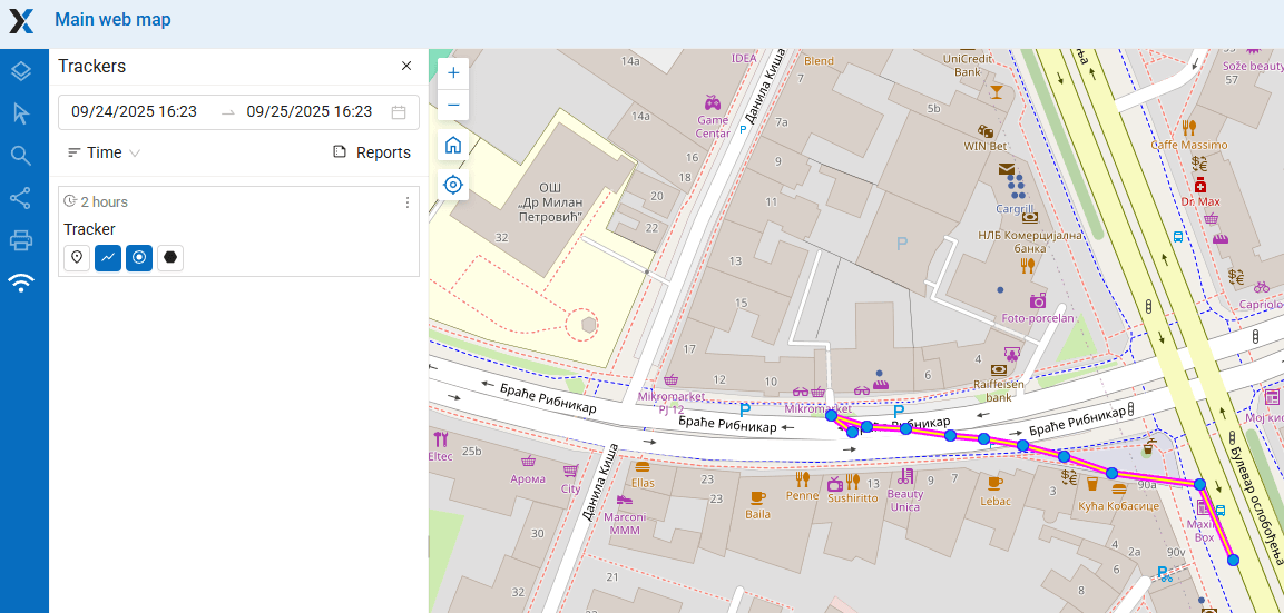By clicking other buttons you could view track line and track points recorded within the selected time range.