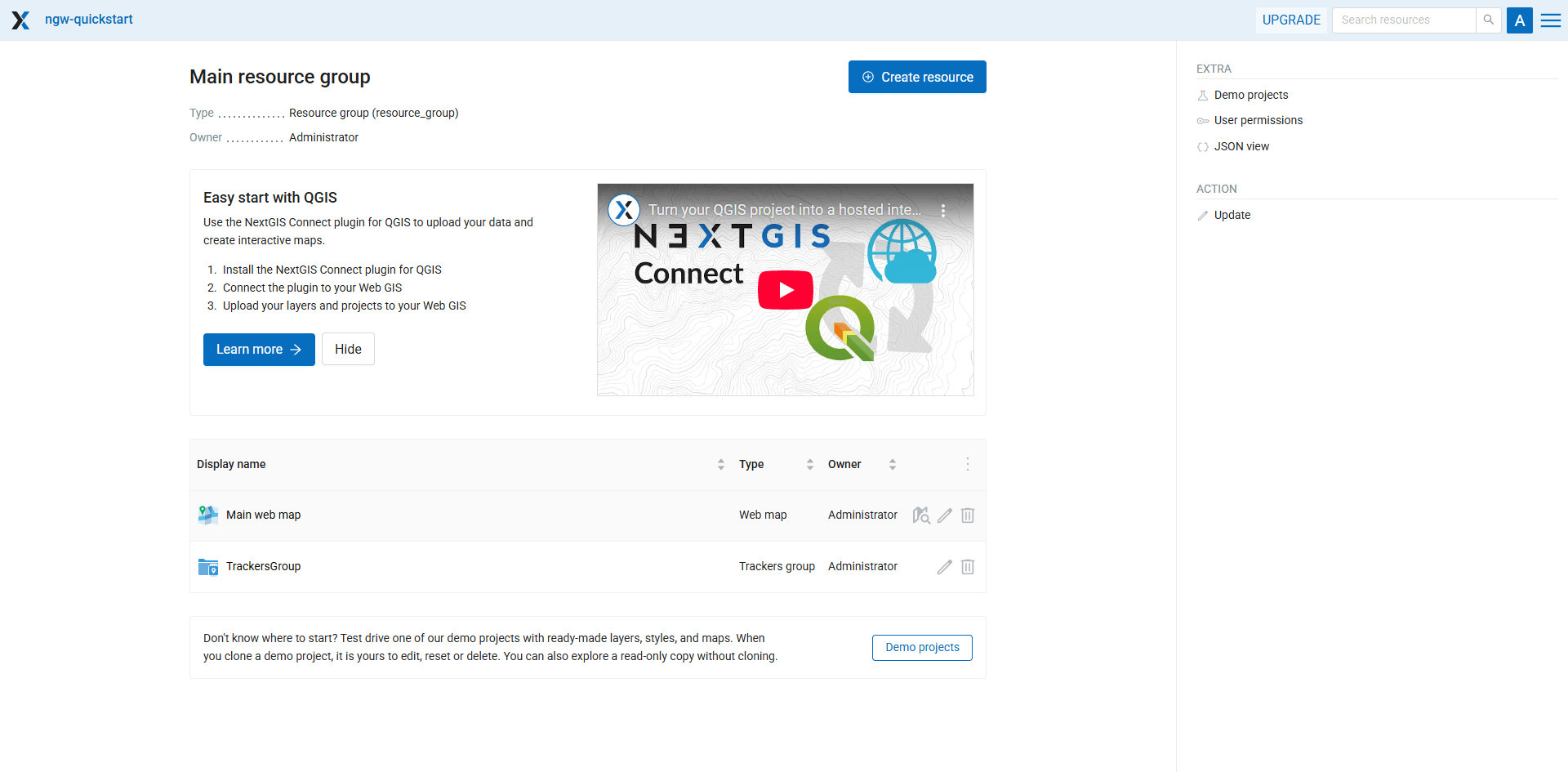 “TrackersGroup” - a resource created by the NextGIS Tracker application when you set up the synchronization. You also can manage trackers manually.