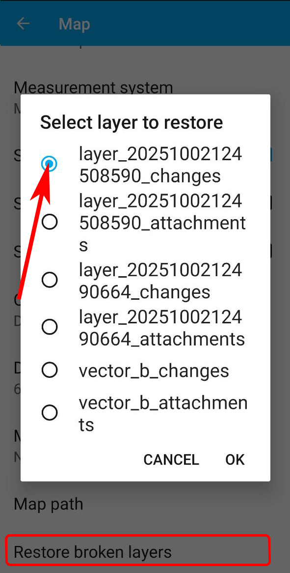 Sometimes in case of memory malfunction, problems with writing data etc the synchronization between the layer on the map and in the app’s memory may break.