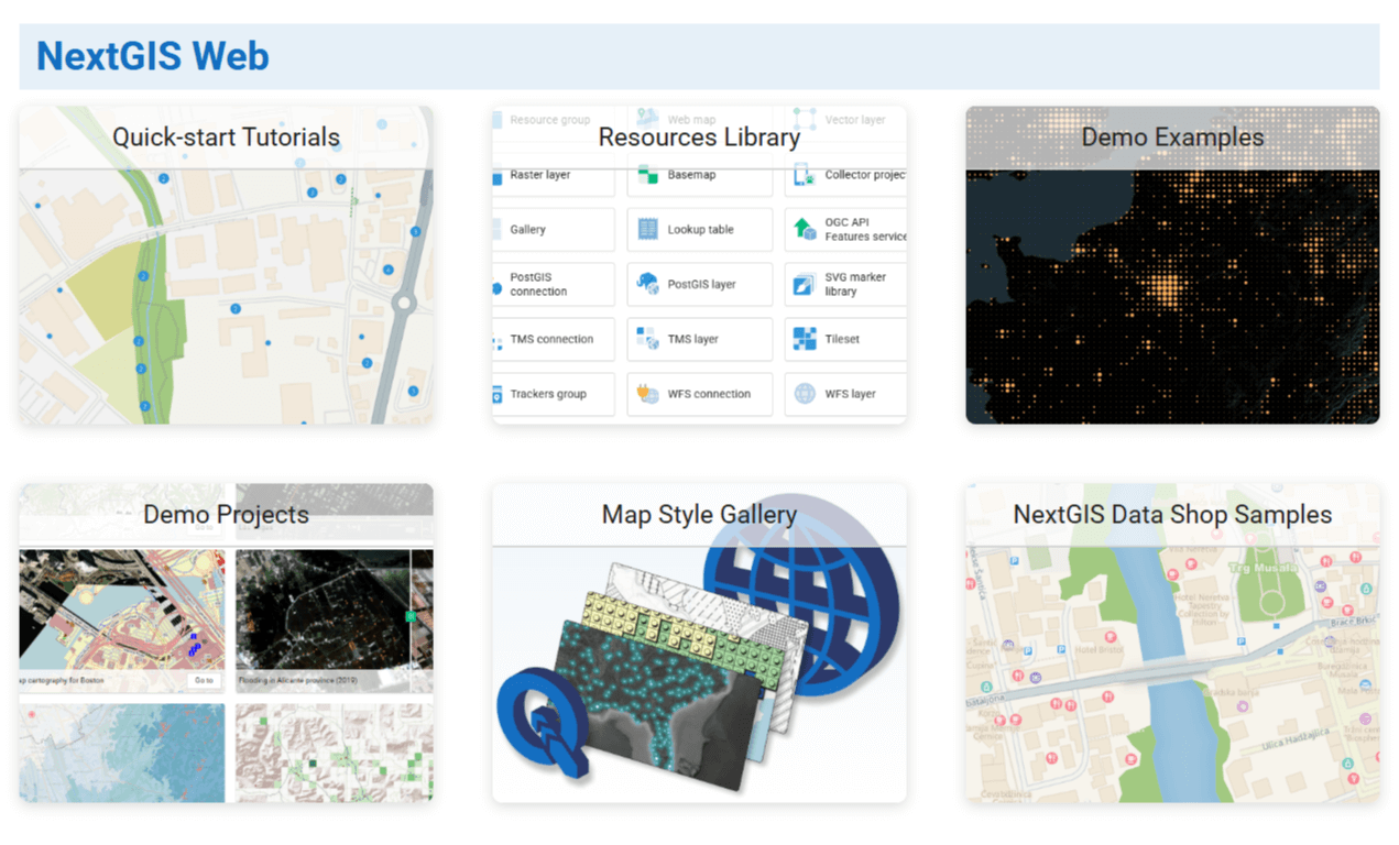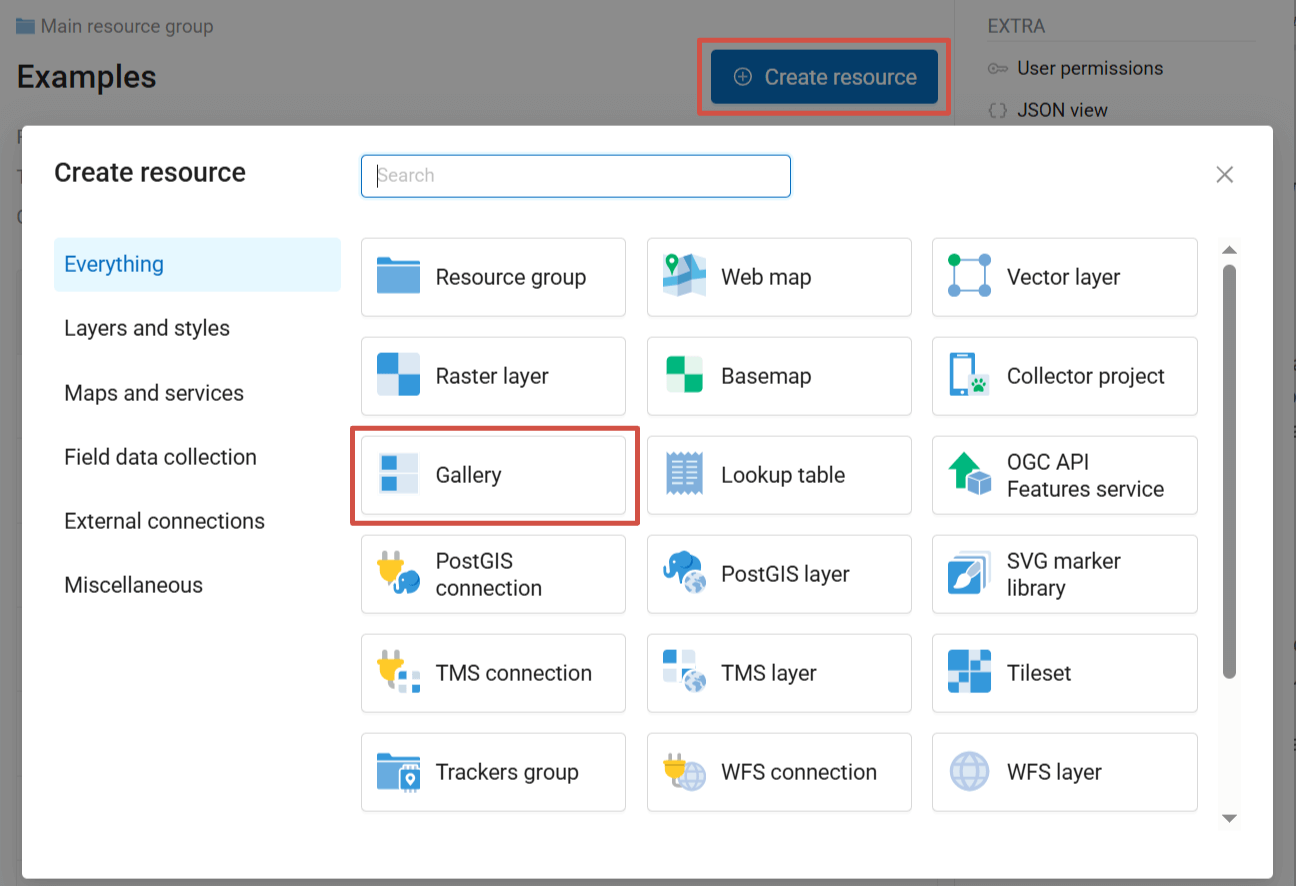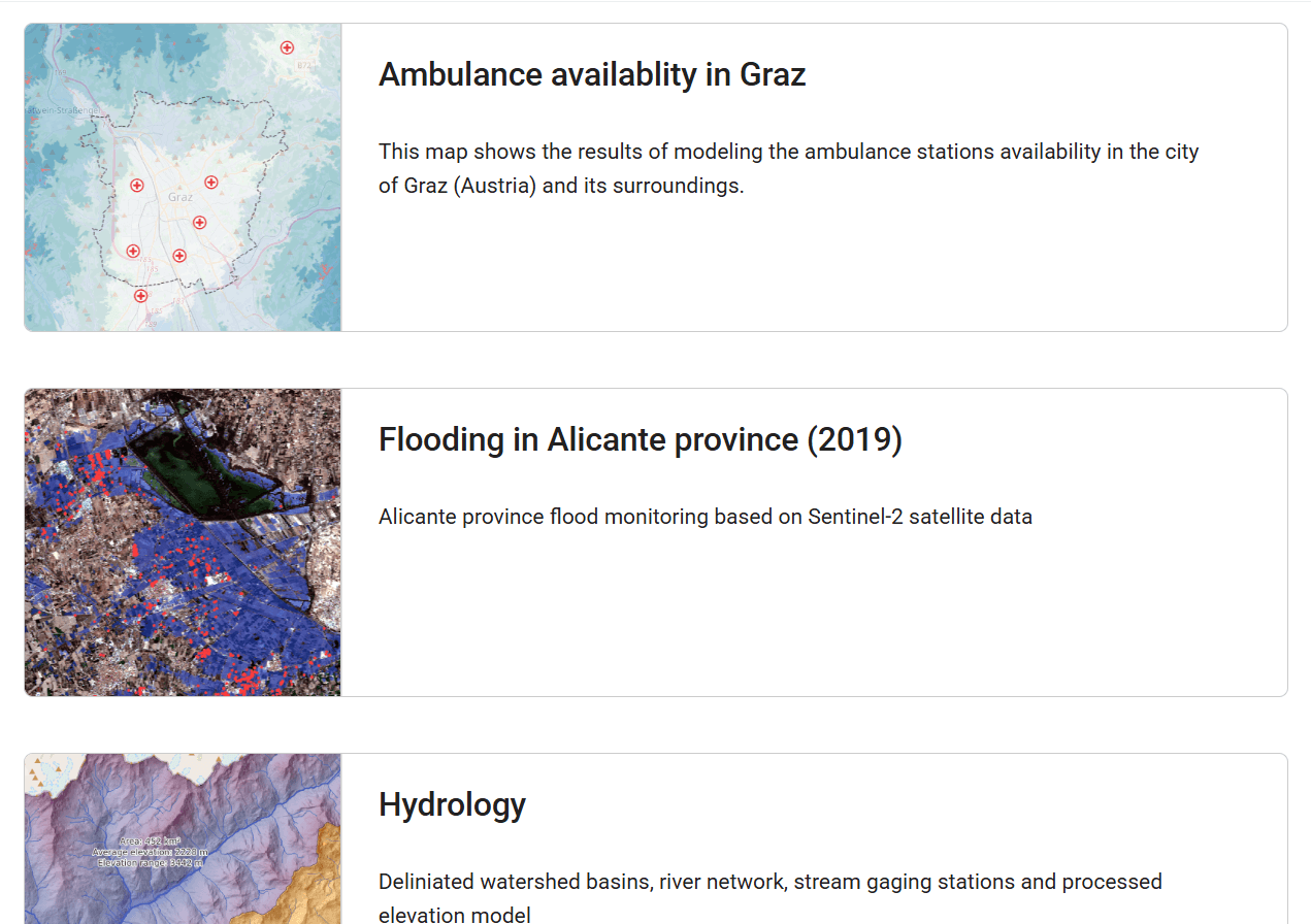 Gallery is a special type of resource that allows to create an overview or a navigation page for the resources of your Web GIS and external links. You can use the gallery as the main page of your Web GIS instead of the standard resource list.
