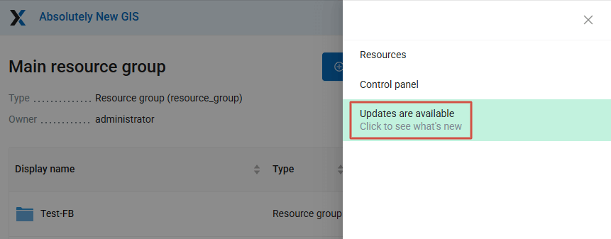 If an update is available, you’ll also get a notification a short while after opening your Web GIS.