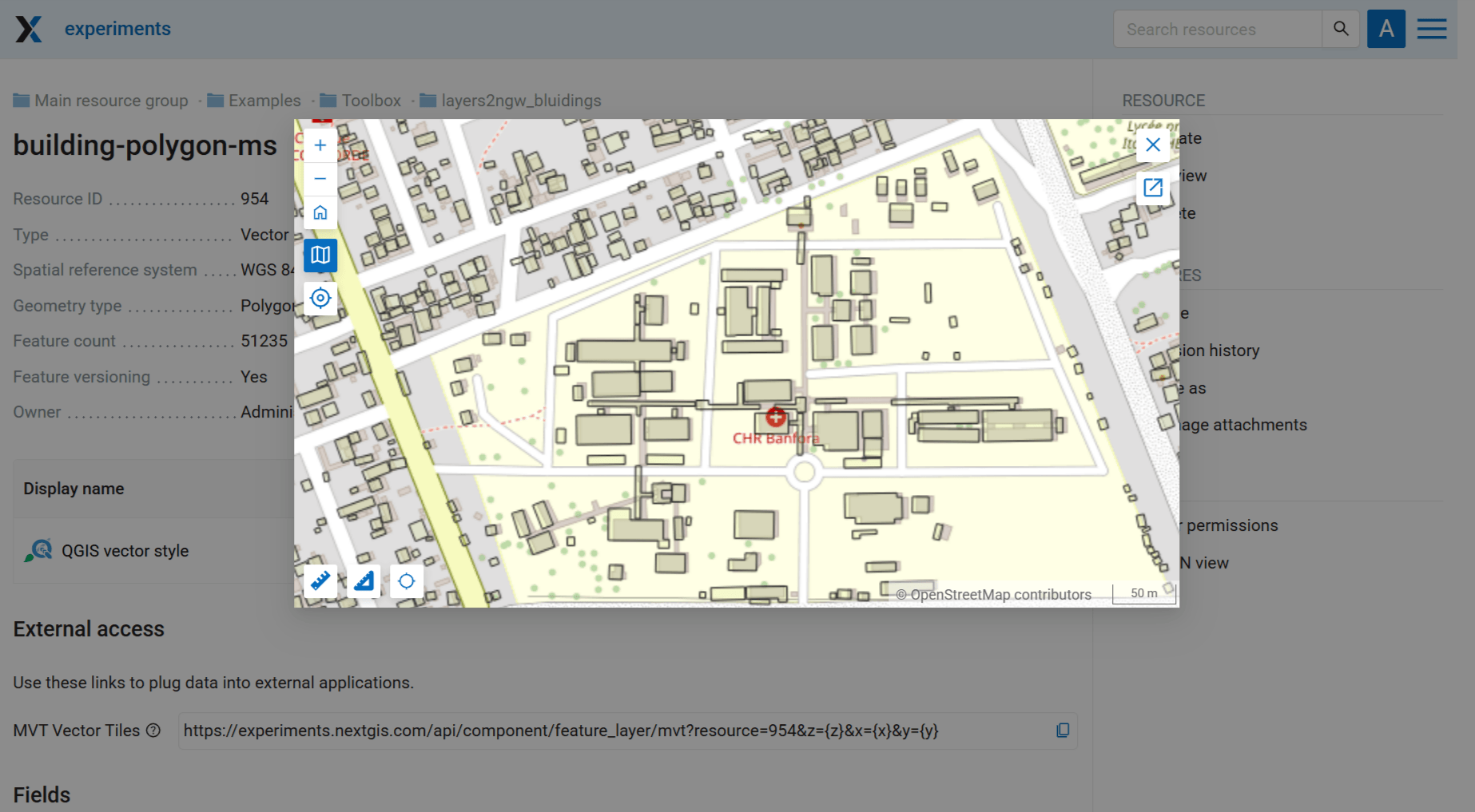 Layers created in NextGIS Web in the selected resource group
