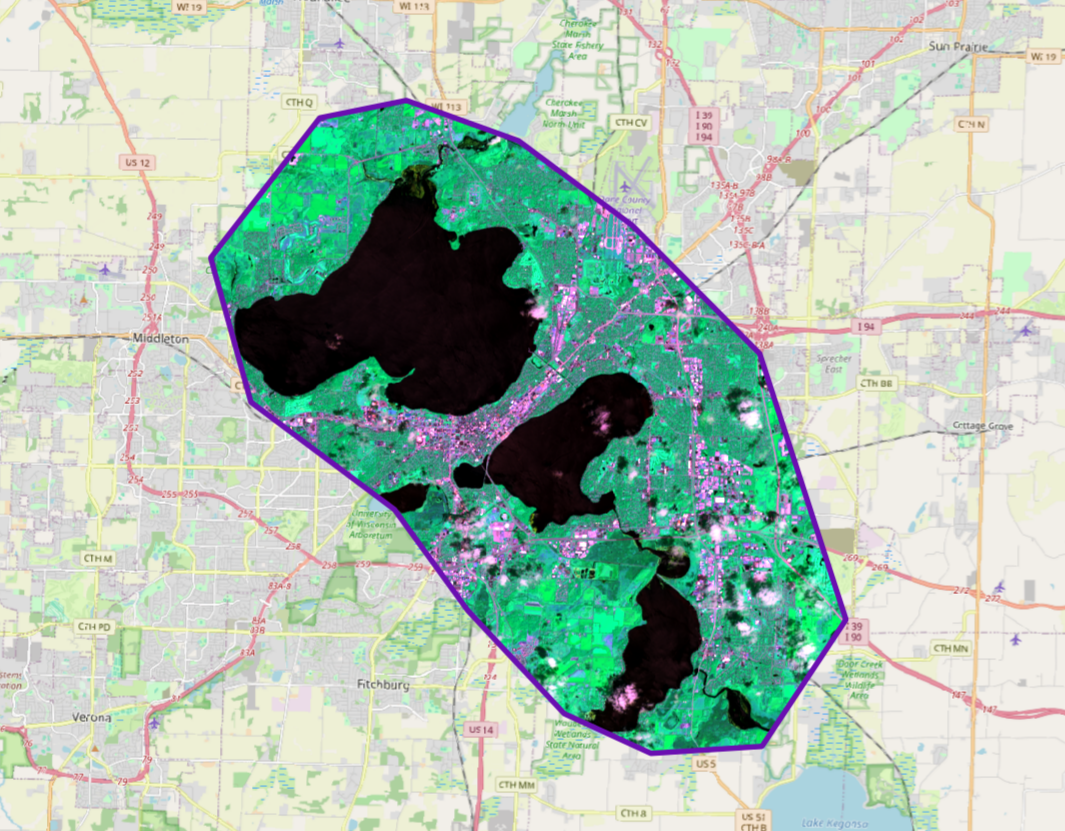 The initial rasters and the vector mask can be in different coordinate systems before processing, all data is brought into a single spatial domain.